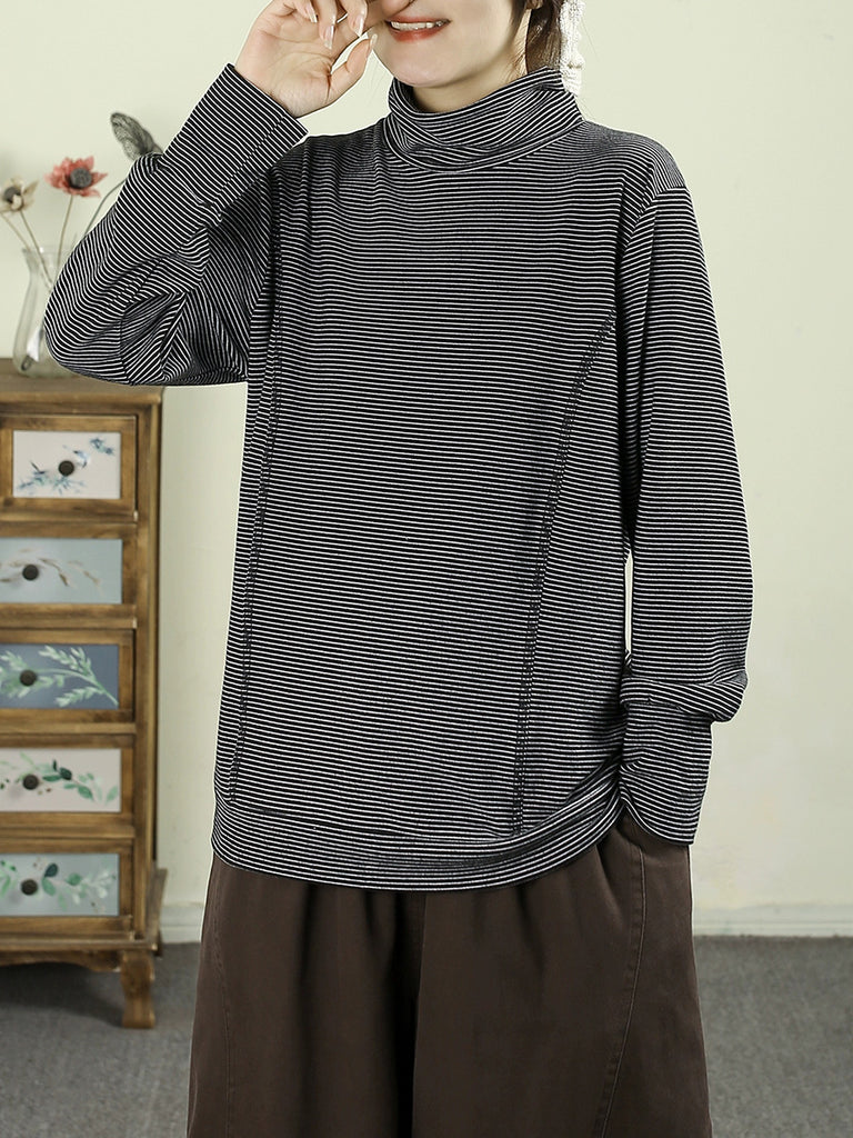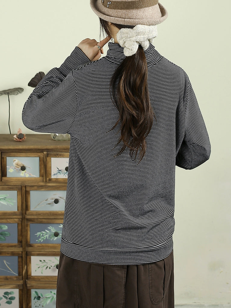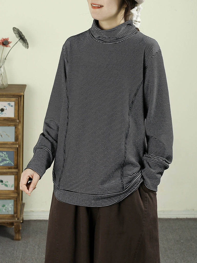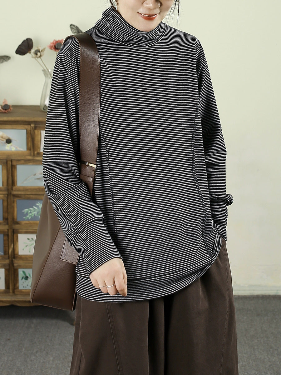 Women Winter Vintage Stripe Turtleneck Blouse