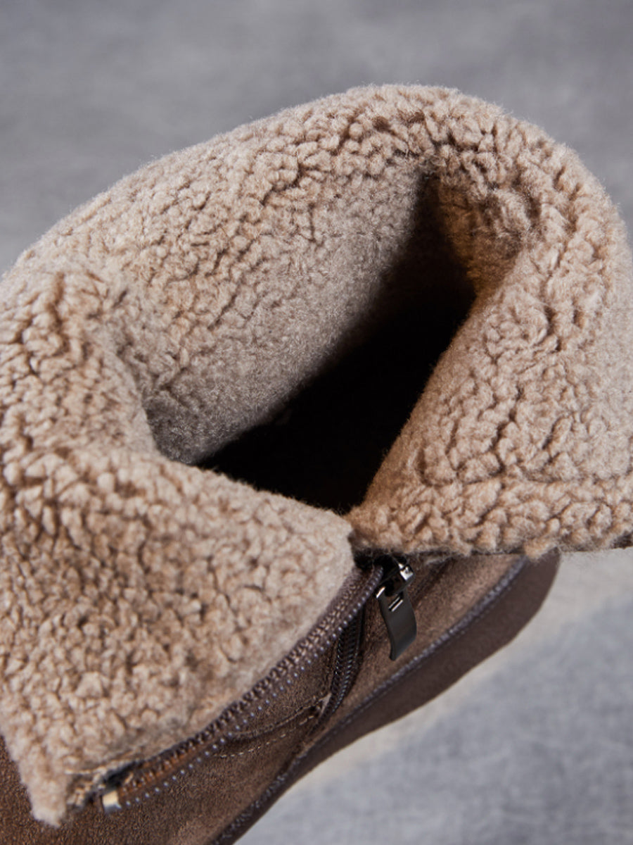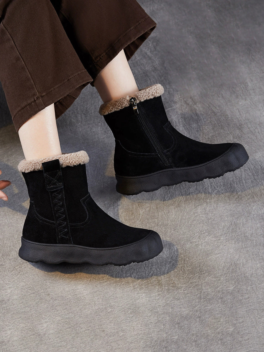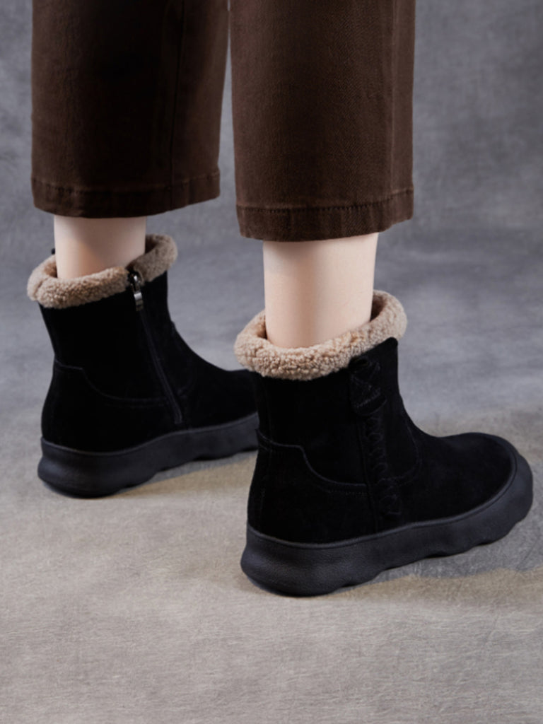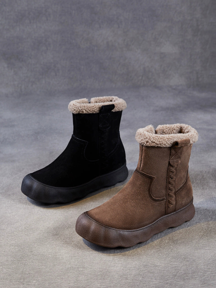 Women Winter Vintage Suded Leather Fleece-lined Boots